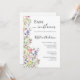 Une belle aquarelle design fleur sauvage avec des fleurs sauvages rose violet et jaune avec une invitation baby shower libellule. Parfait pour le baby shower de vos petites filles.