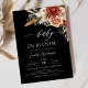 Célébrez votre petit avec le Fleur sauvage noir Baby in Bloom Autumn Baby shower Invitation. Doté d'un arrière - plan noir audacieux et décoré de fleurs sauvages délicats d'inspiration automnale, ce design élégant et moderne est parfait pour un baby shower confortable et saisonnier. Le contraste des fleurs chaudes d'automne par rapport à l'arrière - plan foncé apporte une touche chic et sophistiquée, ce qui en fait l'endroit idéal pour les parents qui aiment une esthétique unique et élégante.