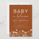 Fêtez l'arrivée d'un nouveau lot de joie avec un beau baby shower thématique Baby in Bloom. Rejoignez-nous pour un après-midi rempli d'amour et de bonheur alors que nous honorons les futurs parents. L'invitation comporte une étonnante terre cuite - texte orange brûlé, accentué par un éventail de fleurs sauvages dynamiques.