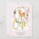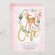 Invitation Bébé floral rousse Cerf Fille de la face 1er anniv