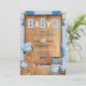 Invitation Bébé Garçon Bleu En vichy Fleurs de bois Bébé Q Ba