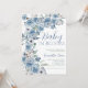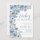 Bienvenue à votre petit avec cet élégant bébé en Baby shower de fleurs Invitation! Avec un agencement époustouflant de fleurs de printemps bleues et une verdure délicate, ce design ouvre la voie à une célébration classée et d'inspiration nature. Cette invitation est idéale pour une célébration intemporelle et magnifique, parfaite pour honorer une maman-à-être et son bébé en fleurs. BBS603