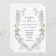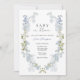Fêtez la maman à être ! Cette invitation baby shower présente une couronne d'aquarelle de fleurs bleues et de verdure. Personnalisez avec vos informations ou cliquez sur "Cliquez pour customiser plus loin" pour modifier les styles, la taille et les couleurs des polices.
