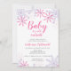 Bébé il fait froid en dehors de l'hiver thème Baby shower invitation pour les bébés filles. Cette invitation est parfaite pour les baby showers d'hiver. Le jeu de couleurs est très girly en rose et violet avec un peu d'or/parties scintillant de texte design. Invitation baby shower rose et violet avec de mignons flocons de neige. Illustration numérique de Kristine Lee. Pour en savoir plus, visitez le site www.kristineleedesigns.com