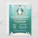 Bébé il fait froid dehors Fête de bébé pingouin d'hiver. Fête de bébé garçon ou fille. Flocon de neige blanc et bleu. Pingouin. Invitation pour fête de bébé vacances d'hiver. Fond aqua. Pour une personnalisation plus poussée, veuillez cliquer sur le bouton "Personnaliser" et utiliser notre outil de conception pour modifier ce modèle.
