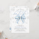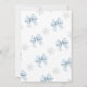 Célébrez votre petit paquet de joie avec le charme douillet de l'hiver en utilisant notre invitation de baby shower "Baby It's Cold Outside" avec un nœud bleu. Ce design chic présente un délicat nœud bleu aquarelle encadré de flocons de neige argentés givrés et une typographie moderne élégante - parfait pour créer une atmosphère festive et hivernale.