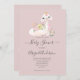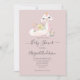 Adorable bébé lama blanc avec fleurs roses sur cette invitation baby shower. Consultez notre collection correspondante de produits de fête et de produits pour bébés.