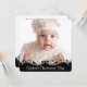 Élégant noir et blanc tourbillonne pleine photo bébé garçon ou fille baptême invitation. Cette belle invitation à baptiser en noir et blanc est facilement customisée pour votre événement en ajoutant simplement les détails de votre photo et de votre événement, le style de police, la taille et la couleur de police et le libellé.