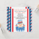 Pétards et feux d'artifice ! Il y a un bébé sur le chemin ! ! Commencez votre célébration par cette invitation adorable de baby shower. Elle a la frontière de bannière étoilée rouge, blanche, et bleue en bas de chaque côté avec le blanc de centre. Au centre inférieur est un bébé mignon dans un baril bleu et blanc utilisant un casquette patriotique et tenant le drapeau américain dans chaque main. Personnalisez avec votre information de partie. Vérifiez les autres conceptions et couleurs que nous offrons. illustrations de ©JW
