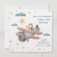 Invitation Bébé pilote d'avion à l'aquarelle bleue et verte