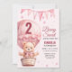 Invitation Bébé rose Fille Air Ballon Teddy Ours Anniversaire