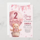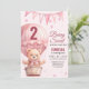Pink Baby Girl Air Ballon Teddy Bear Anniversaire Célébrez le précieux jalon de la première année de votre petite fille avec cette invitation enchanteresse avec un ours lunatique dans une montgolfière aux détails doux et rose. "Rose, Baby girl's 2nd anniversaire", "baby girl's 2nd anniversaire, mignon" "aquarelle ours, calligraphie de script moderne" "typographie, bébé animal" "jouet doux plushie, béary doux" "ballon à air chaud, tendance, lunatique", "magique, rêveur, adorable" célébration rose délicat charme lunatique