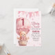 Invitation Bébé rose Fille Air Ballon Teddy Ours Anniversaire