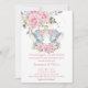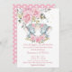 Invitation Bébé rose floral mignon Eléphants Twins Baby showe