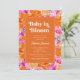 Invitation Bébé rose orange en fleurs Baby shower Floral Retr