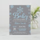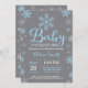 Bébé C'Est Froid À L'Extérieur De L'Invitation Baby shower D'Hiver.Invitation Baby shower. Invitation du Baby shower des Fêtes d'hiver. Les flocons de neige bleus et blancs. Arrière - plan gris.