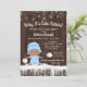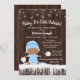 Les garçons reçoivent des invitations pour des douches d'hiver avec un adorable bébé ethnique portant un vêtement de neige bleu bébé avec un casquette sur un arrière - plan de bois rustique et de flocons de neige. Ces invitations pour les douches pour bébés aux flocons de neige en hiver sont facilement customisées pour votre événement en ajoutant simplement vos détails. Cette conception fonctionne bien pour un flocon de neige ou un genre d'hiver révéler l'invitation.