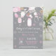 Bébé son froid en dehors de l'hiver Mason Jar Baby shower Invitation. Invitation Baby shower garçon ou fille. Les flocons de neige roses et blancs. Pot Mason. Fleurs florales. Éclairage à cordes. Arrière - plan gris. Pour plus de personnalisation, cliquez sur le bouton "Customiser" et utilisez notre outil de conception pour modifier ce modèle.