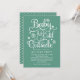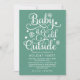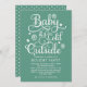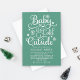 "Baby it's Cold Outside" Noël fêté design modèle de design d'invitation avec une typographie de script blanc design flocon de neige et accents d'étoile et texte de célébration qui peut être personnalisé avec votre libellé préféré. La couleur arrière - plan verte de jade profonde peut être customisée.