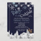 Style rustique élégant bébé il fait froid dehors garçon douche hiver chic modèle d'invitation avec des bordures de flocons de neige blancs, chute de neige et pins paysage merveilleux sur minuit sombre bleu marine arrière - plan. Remplissez vos informations dans les zones, Vous pouvez choisir de le customiser en changeant encore les polices et les couleurs du lettrage. — Veuillez noter que la couleur arrière - plan est modifiable des deux côtés. Pour le modifier, sélectionnez l'option PERSONNALISER. — L'invitation est appropriée pour les élégantes montagnes boisées d'hiver rustique / fêtes de baby shower de Noël. — Si vous avez besoin d'aide, s'il vous plaît contactez-moi!