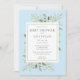 Doté de feuilles délicats d'aquarelle sur un arrière - plan bleu doux, ce chic bébé garçon douche, arrosage ou couple invitation à la douche peut être personnalisée avec vos informations spéciales de baby shower, avec un arrière - plan à la sauge argentée au verso. Conçu par Thisisnotme©