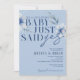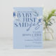Bébé vient de dire oui Aquarelle Fleur bleue Engagement ou Invitation de fête de douche de mariée. Avec de belles fleurs aquarelles élégantes de couleur ardoise bleue poussiéreuse. Disponible imprimé avec des enveloppes ou en téléchargement numérique haute résolution.