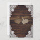 Faire-part de mariage de respiration pour bébé rustique avec fleurs d'haleine de bébé à l'intérieur d'un bocal de maçon décoré de coeurs de burlap et d'un tag avec initiales contre un arrière - plan de bois rustique orné de dentelle. Personnalisez facilement ce faire-part de mariage floral rustique pour compléter votre pays rustique, ou fête de mariage de grange.