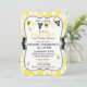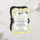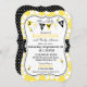 Impression peigne de miel avec accent polka-point noir et blanc et design de carte d'invitation baby shower moderne des abeilles de miel. Les couleurs sont jaune, noir et blanc.