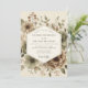 Soft beige and muted earth tones create an autumnal floral display. Lush botanical elements and blooming flowers evoke a romantic, vintage feel. This design is perfect for a warm, rustic celebration.