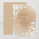 This design features a soft, ethereal aesthetic with a palette of warm beige and cream tones. Delicate botanical illustrations of blooming flowers and leafy branches create an elegant and romantic atmosphere, perfect for a sophisticated union.