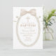 Invitation Beige White BOW Pearls Girl Baptism Christening