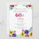 Belle et élégante invitation à 60ème anniversaire pour les femmes, avec de belles fleurs d'aquarelle peintes à la main.