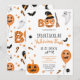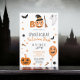 Adorable joli Boo Halloween illustrations enfants fête, parfait Halloween fête, avec de jolies illustrations avec fantômes et boo beignets peints avec casquettes sorcières, balai, blanc mignon fantôme, citrouille sculpté, ballon, araignée et chauves-souris. Une adorable illustration d'Halloween.