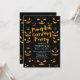 Citrouille moderne sculpter Halloween Party Invitation avec des visages Jack-o'-lantern orange sur un arrière - plan noir avec moderne "citrouille sculpture party" en typographie orange dégradé. Retournez l'invitation de la fête de l'halloween pour voir un retour correspondant pour une touche spéciale supplémentaire.