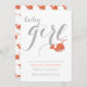 Jolie baleine corail océanique typographie bébé douche fille. Il contient le texte "Petite fille" et une petite baleine à pêche corallienne avec le coeur. Le dos comprend un motif de baleines.