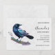 Invitation à une fête d'anniversaire avec un charmant dessin à l'aquarelle d'une corneille. Des couleurs bleu foncé et violet vibrant accentuent la beauté de cet oiseau.