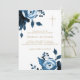 L'invitation au baptême religieux bleu marine classique comporte une croix d'or élégante et des fleurs bleues de style vintage à l'avant, avec une belle indigo bleu foncé retour de la carte. Célébrez la Dénomination chrétienne de votre enfant ou le sacrement catholique du baptême avec cette jolie invitation botanique florale. Cette invitation sophistiquée au baptême botanique floral est également parfaite pour un baptême adulte.