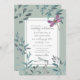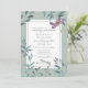 Cette belle faire-part de mariage comporte deux libellules aquarelles, l'une dans les tons bleu et vert avec des ailes irisées et l'autre avec des ailes dans les tons violet et rose. Ils se reposent sur un agencement simple de verdure naturelle de jardin aquarelle dans les tons vert, bleu, gris et marron. -