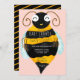 Un baby shower d'abeilles moderne et mignon, avec une illustration fantaisiste d'une adorable petite abeille aux rayures orange, jaune et noire, l'arrière - plan de couleur rose et les rayures sont entièrement modifiables.