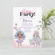 Cette invitation à la fête d'anniversaire colorée et festive présente un thème de poupées de parties scintillant. Deux jolies poupées sont représentées en bas avec des cheveux et des tenues colorés. De jolis petits coeurs aux accents de parties scintillant d'or accentuent les frontières au-dessus d'eux. Au fond de l'invitation se trouve un motif pastel à dégradé arc-en-ciel avec des pois d'or.