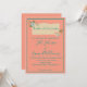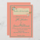 Belle invitation à un mariage sur la plage côtière, ce design présente un arrière - plan rose avec une bordure verte. Le dessus est orné d'une belle bannière de plage avec fleurs et coquillages. La police est présentée en vert.