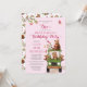 Un mignon petit ours au miel avec ses doigts dans la jarre de miel est entouré de jolis papillons roses et des fleurs assis sur une voiture rustique vert olive chargée d'ours sur un subtil arrière - plan de pois rose et blanc dans cette petite fille "Drive Through Birthday Party" design composite par Holiday Hearts Designs. Conçu pour un "One" year old — s'il vous plaît concepteur de messages si vous voulez pour une autre année (2 et 3 ans disponibles par achat séparé). Le dos est orné d'un motif répétitif d'ours dormant, dansant et trempant leurs pattes dans la marmite à miel. Personnalisez simplement avec vos détails de célébration.