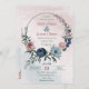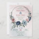 Belle faire-part de mariage botanique avec fleurs rose, bleu poussiéreux et bleu marine avec feuilles verts sur un cercle vert formant une jolie couronne romantique. Il convient aussi bien aux invitations mariages qu'aux fiançailles. POUR PLUS DE PRODUITS CORRESPONDANTS cliquez sur la collection ci-dessus ou contactez-moi.