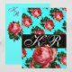 INVITATION BELLE ROSE ROSE AQUA BLEU TEAL MONOGRAMME FLORAL