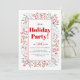 Cette invitation de fête de Noël présente un design non traditionnel, avec un cadre en baies et feuilles sur le devant. Le texte se démarque en caractères rouges gras, annonçant la fête des fêtes, et vos détails sont inclus dans le design. Le fond de l'invitation est d'une couleur rouge solide, ce qui donne une impression festive. Cette invitation unique saura enchanter vos invités et faire en sorte que votre fête de vacances soit célébrée !