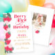 Célébrez le premier anniversaire de votre petite fille avec cette douce invitation pour le premier anniversaire du Berry. Doté de fraises vibrantes, de fleurs ludiques et de couleurs joyeuses, cet aménagement est parfait pour une fête estivale ou une fête dans le jardin. Customisez facilement avec le nom de votre enfant, la photo, les détails de la fête, etc. Un thème frais et amusant qui est sucré de baies pour la journée phare de votre petite fille!