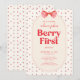 This berry first birthday invitation features pink red watercolor strawberries, tiny hearts, and a sweet bow detail for a soft and playful look. Designed as a berry 1st birthday invite, it works beautifully as strawberry birthday invitations for a baby girl boy neutral birthday in any season. Personalize the name date and party details to create a berry sweet keepsake for a milestone birthday celebration. Add your details and personalize yours today.