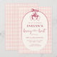 Invitation Berry First Birthday Pink Red Bow Strawberry