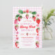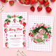 Ce design de fraise Berry 1er Anniversaire présente des fraises d'aquarelle et des fleurs dans une palette de couleurs rose, rouge et vert avec un motif en vichy chèque rose sucré derrière une arche. A l'arrière du design il y a un cadre photo circulaire qui est bordé de fraises et de fleurs, il sert aussi de garde photo très mignon pour longtemps après la fête. Vous pouvez customiser cette invitation à votre événement. Voir l'ensemble de la collection correspondante. Toutes les oeuvres sont illustrées à la main et protégées par copyright à Kaitlyn Thomas.