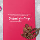 Couleur changez cette carte de vacances en framboise & bleu pour vos propres valeurs hexagonales d'entreprise ! Les illustrations magenta et bleu foncé sur cette carte peuvent être changées en n'importe quelle couleur, tandis que la conception brillante en bronze a d'autres filtres à choisir. Téléchargez facilement votre logo de n'importe quelle couleur, et concevez cette carte autour. Message blanc sur le dos avec n'importe quelle couleur arrière - plan que vous choisissez.
